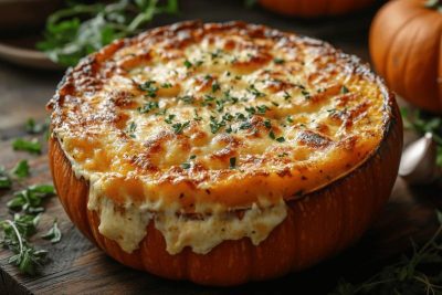 Gratin de potiron au fromage fondant pour 4 personnes : recette gourmande d’octobre.