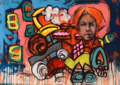 Ses couleurs vives racontent les souvenirs heureux. Les jeux avec sa tante, cette héroïne du quotidien, son rire innocent, son amour pur… Elle lui a appris à exprimer ce qu’il ressentait, quand les mots manquaient. Même les monstres, robots et mutants présents dans ses tableaux ont leur sens. Ils incarnent la laideur du harcèlement, même s’il ne l’a pas toujours subi directement.